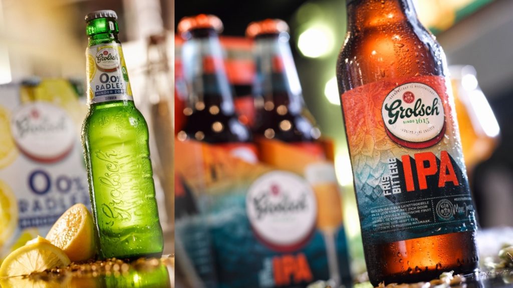 In de twee hardst groeiende segmenten van de Nederlandse biermarkt introduceert Grolsch twee nieuwe bieren: de Radler Minder Zoet en de Frisbittere IPA. De nieuwe Frisbittere IPA heeft naast de herkenbare bittere IPA smaak, tevens sterke aroma’s van citrus en tropisch fruit.