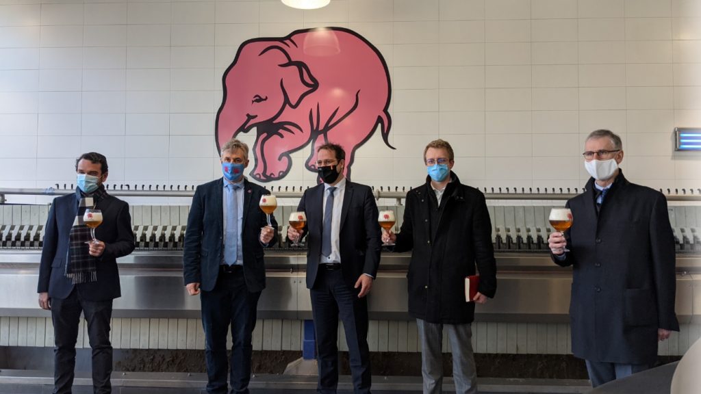 2020 was voor veel bedrijven een annus horribilis en dat geldt ook voor brouwerij Huyghe: vorig jaar realiseerde de brouwerij een omzet van 37,5 miljoen euro, een daling met 18% ten opzichte van 2019. Dit valt te verklaren door de langdurige sluiting van de horeca gedurende een groot deel van het jaar en het einde is nog niet in zicht. Bovendien kwam daar sinds 31 januari de Brexit nog eens bovenop, wat opnieuw een opdoffer betekende voor Huyghe. Alain De Laet, CEO van de brouwerij, legt uit: “Het Verenigd Koninkrijk is onze vierde grootste exportmarkt, goed voor 5% van de omzet. We verwachten echter dat deze cijfers een terugval zullen kennen, omdat onze klanten door de Brexit geconfronteerd worden met tal van problemen: de transportkosten stijgen, door de hele papiermolen zijn verzendingen ook langer onderweg waardoor last-minute bestellingen niet meer mogelijk zijn, de labels op het bier moeten aangepast worden, extra certificaten zijn nu nodig, enz.” De Laet benadrukte tijdens het bezoek van de Minister dat omzetdalingen door corona en door de Brexit echter niet de enige bedreigingen zijn voor KMO’s. Ook de protectionistische houding van de Franse markt waarbij Belgisch bier extra zwaar getaxeerd wordt, doet de brouwerij nog altijd pijn.