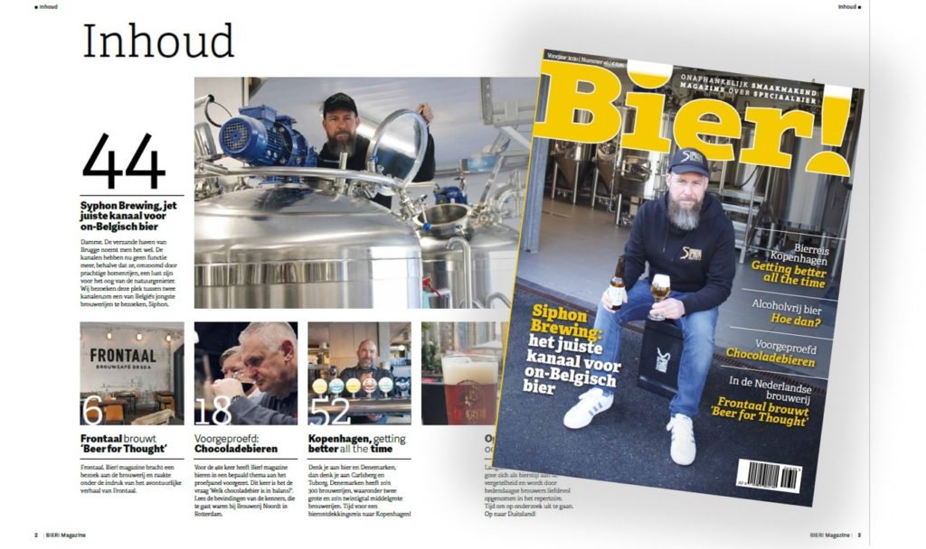 Inhoudelijk is het weer een overheerlijk nummer geworden met schitterende reportages over de Belgische brouwerij Siphon Brewing in Damme (onder Brugge) en de Nederlandse brouwerij Frontaal in Breda. Verder een interessante bierreis-reportage over het Deense Kopenhagen, niet alleen de stad van Carlsberg en Tuborg, maar zeker ook van mooi craftbier brouwerijen en taprooms. In de rubriek Voorgeproefd komen negen chocoladebieren voorbij, geproefd en beoordeeld door een vakkundig panel. Voor de liefhebbers van zure bieren is auteur Raymond van der Laan op zoek gegaan naar de oorsprong van de Gose. Ook is er een interview te lezen met de mannen van Brouwerij Huttenkloas over de tv-documentaire die over hen is gemaakt (deze docu wordt 13 april a.s. uitgezonden bij KRO-NCRV). Natuurlijk ook weer de bekende historische rubrieken, onder andere ook over het magische jaar 1870.